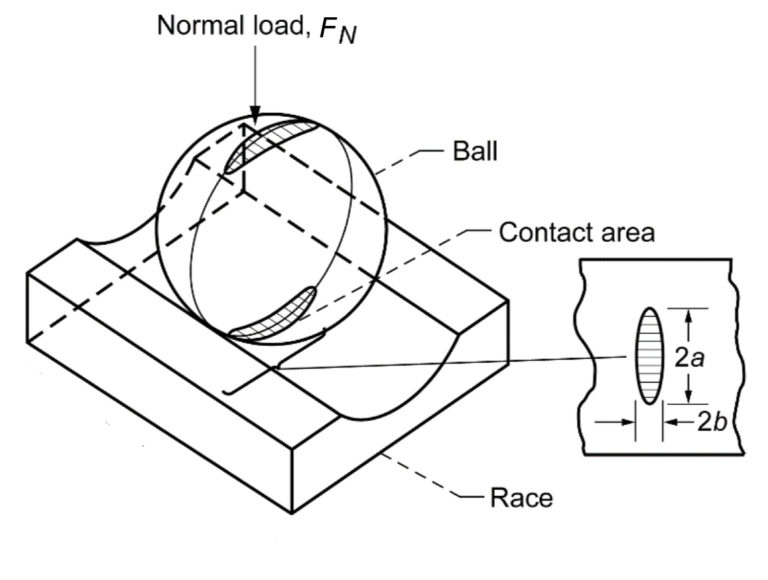 赫茲應力 當任何兩個半徑不同的表面接觸時,都會存在赫茲應力,即使一個表面是平坦的,當兩個不同半徑的表面接觸並施加負載(即使是極小的負載)時,會形成一個小的接觸面積,並且表面會受到非常高的應力。 這些應力被稱為赫茲(或赫蒂齊安)應力。 在滾動元件線性軸承中,赫茲應力發生在球(或圓柱體)和滾道上。