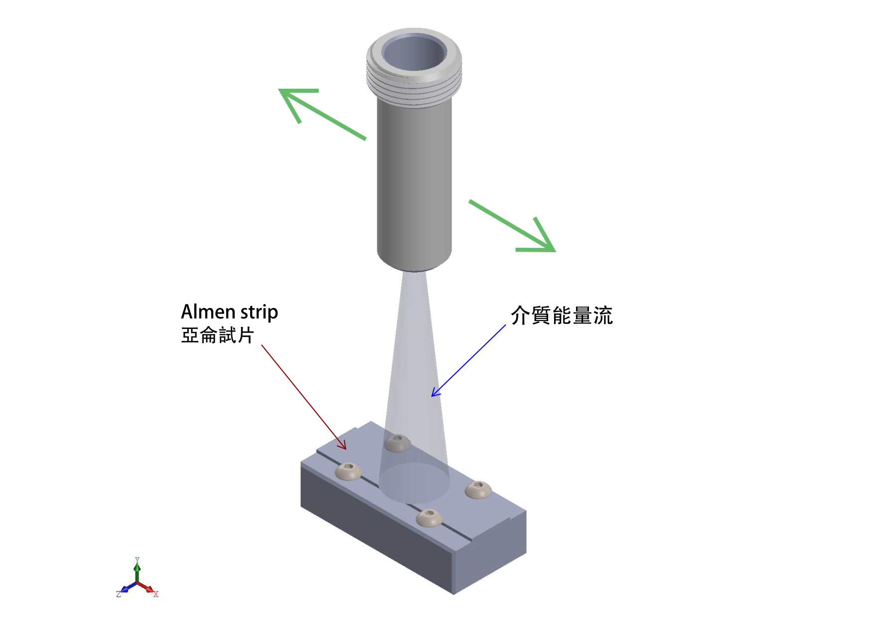 接著把亞侖試片 Almen strip 利用試片固定座上的四個螺絲鎖緊在固定座上,再利用噴氣式或輪甩的方式將介質均勻的推送到試片上,借用介質的動能將能量轉換到試品上,使試品產生應變的變化,當珠擊作業完成後因試片被固定在固定座上所以還是處於平整的狀態,量測時將固定座上的四個螺絲放鬆(螺絲要多鬆開一點),此時試片會因應變能的關係在珠擊面上型成凸型的圓弧狀,取出試片再次的放在量規上,同樣的要對正。 測量時,將珠擊後的試片放入 Almen 量規中,確保測量時不受外力影響,然後讀取試片的 弧高度(Arc Height,mm 或 inches)。此數值即代表珠擊強度,並將其作為後續飽和曲線分析的依據。如果數字為25即代表此試片的對應值為 0.025,在亞侖試片內容中有提到 "A"、"C"、"N" 三種Almen strip 此時如果是 "A" 代號試片即將 A 代入即成為 0.025 A此時要注意量規的單位,如果是英呎的數字後面要加上英吋的代號即為 0.001" A,如果是公制的可以不用加代號代號沒看對可是差很多的喔! |