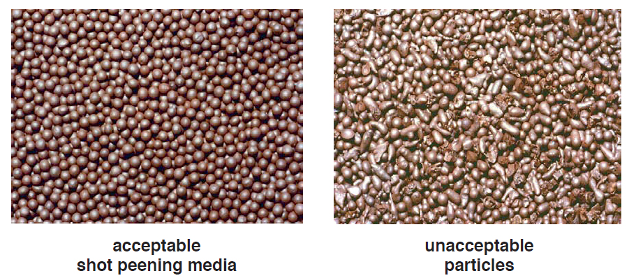 珠擊介質必需是以圓的為主,介質的球狀形態須有一定的規範,同時當介質在使用過程中破裂,破碎和磨損介質必須被移除,以防止在衝擊時為害到表面。破碎的介質會導致裂紋的萌生。
